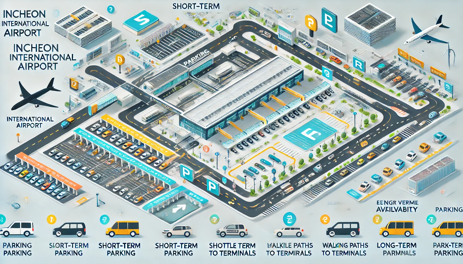 인천공항 주차장은 크게 단기주차장, 장기주차장, **외부 주차장(민간)**으로 나뉘며,
