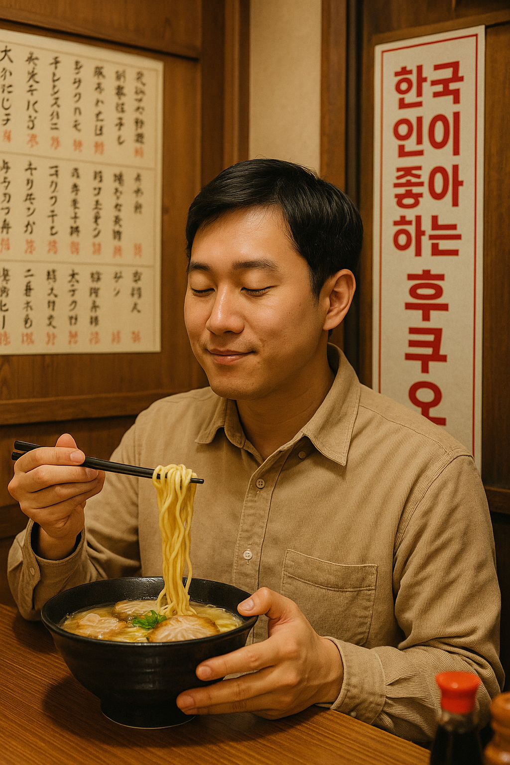 - 혼밥도 부담 없음: 후쿠오카는 혼자 여행하는 사람이 많아 혼밥이 전혀 어색하지 않습니다. 라멘집처럼 1인석이 있는 곳도 많습니다.