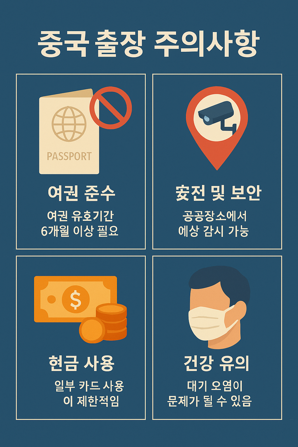 중국은 비자 제도가 엄격하며, 사전에 준비해야 할 서류와 절차가 많습니다. 최근 몇 년간 비자 발급 요건이 수시로 바뀌고 있어, 최신 정보를 확인한 후 철저히 준비하는 것이 중요합니다.