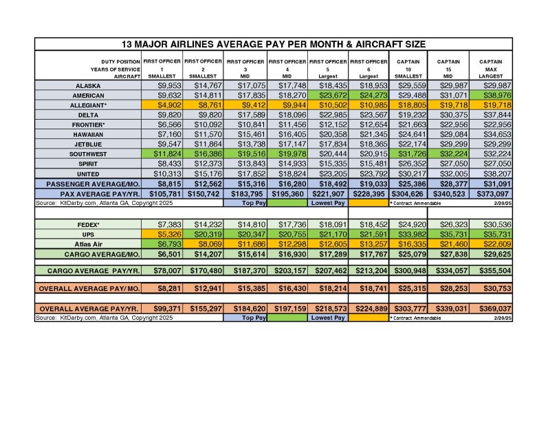 특히 Delta Air Lines은 글로벌 Top 3 항공사 중 하나로, 파일럿 보상 수준이 업계 최고 수준입니다.